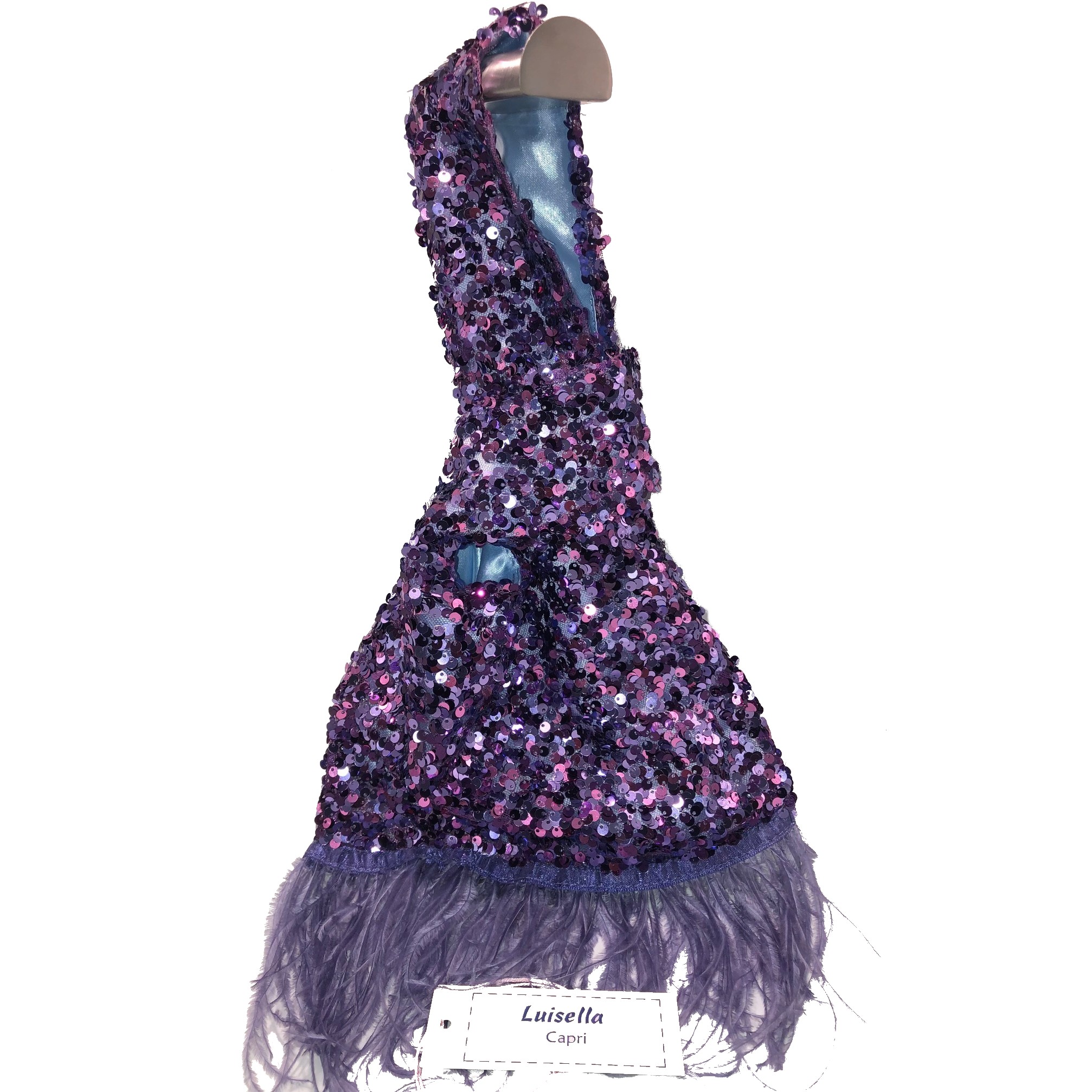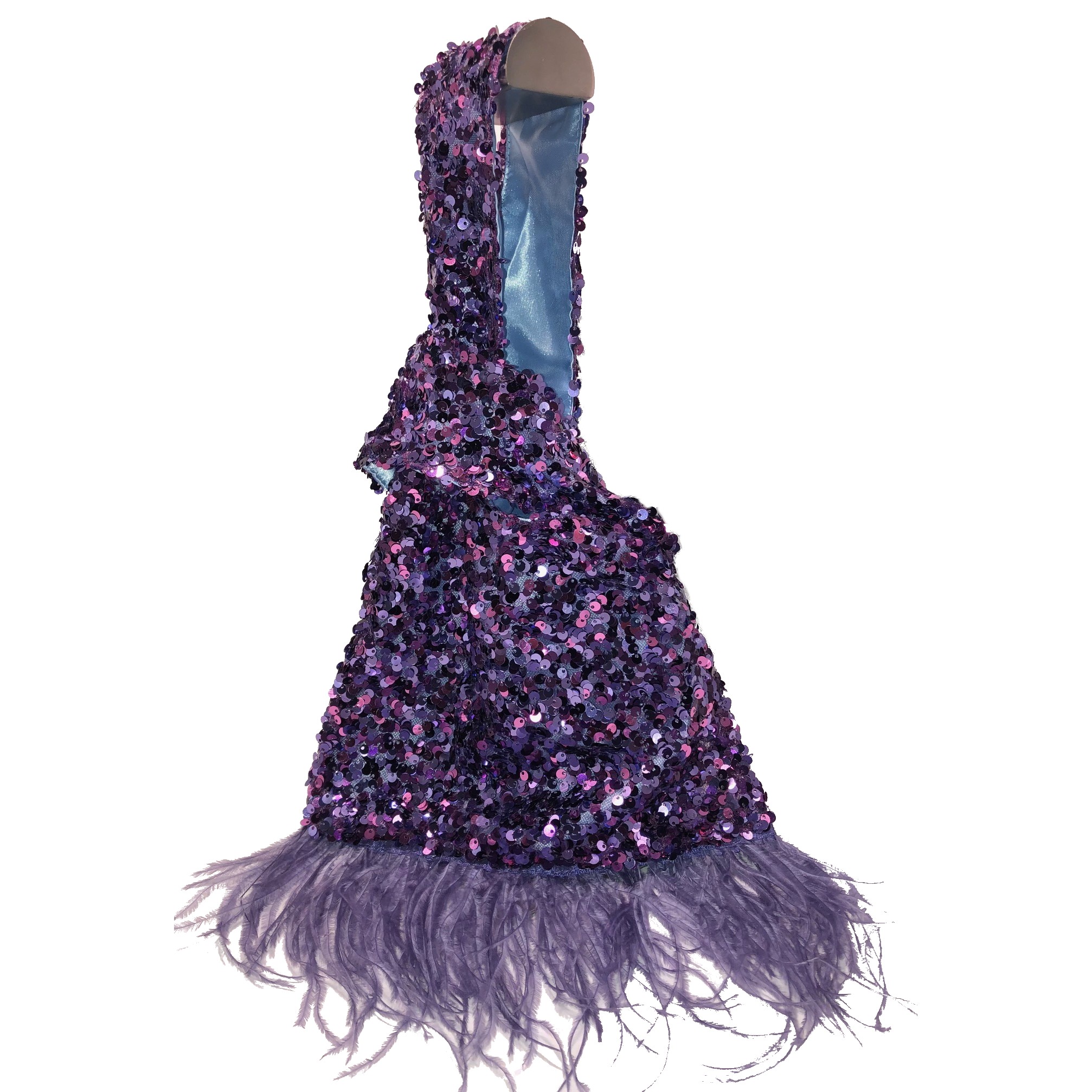 borsetta paillettes con piume naturali, Luisella Capri . Colore Prugna